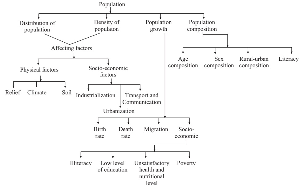India is the second most populous country of the world after China. The distribution of population is generally studied in terms of density. The density of population in India is not uniform. On the basis of density of population, India can be divided into three broad regions of high density, the areas of moderate density, and the areas of low density. The factors which affect density and distribution can be grouped into two categories. They are physical factors and socio-economic factors.